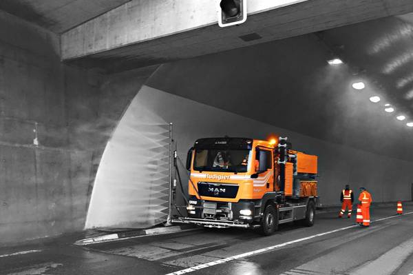 Parkplätze, Sportplätze, Kantonsstrassen, Privatstrassen, Einstellhallen und Tunnels, auch für diese Art von Reinigung sind unsere Fahrzeuge ausgerüstet.